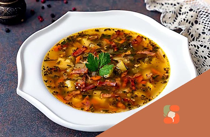 Картопляний суп з цукіні, селери та беконом