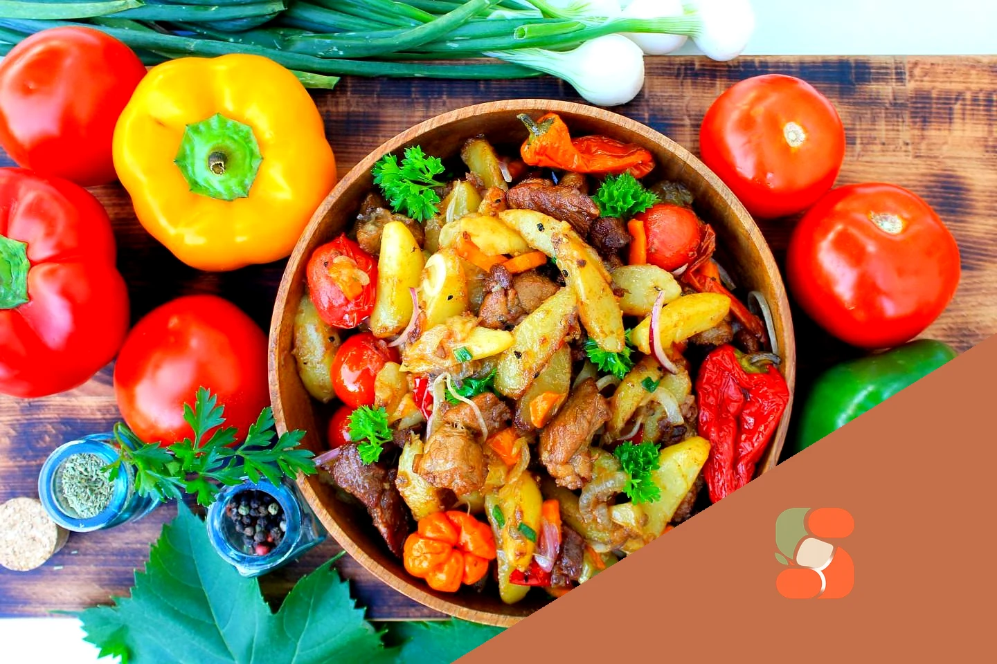 : Коли м'ясо буде готове, можна приступати до завершальних кроків Відкрийте кришку казана, якщо в ньому занадто багато рідини, випаруйте потрібну кількість. Відправте в казан картопля та обсмажені овочі.