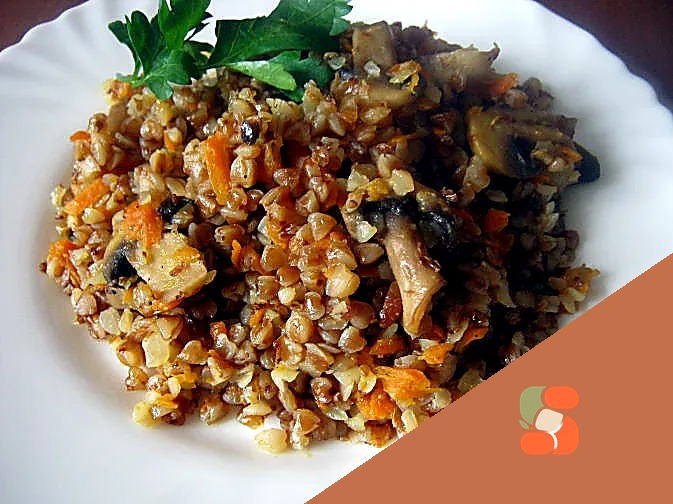 Ароматна гречка з золотистою скоринкою, оточена нарізаними шампіньйонами та яскравими овочами — справжня палітра осінніх смаків на одній тарілці. М'які гриби надають страві землистості, а овочі дарую…