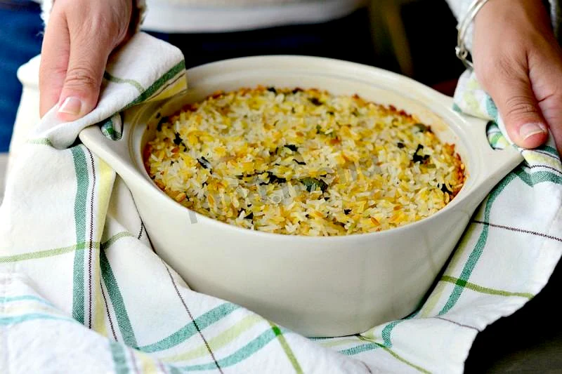 : Небагато перемішайте вміст ємності, не порушуючи шари. Поставте в духовку на 190 градусів та приблизно 40 хвилин. Каша готова, коли вся рідина ввібралася.
