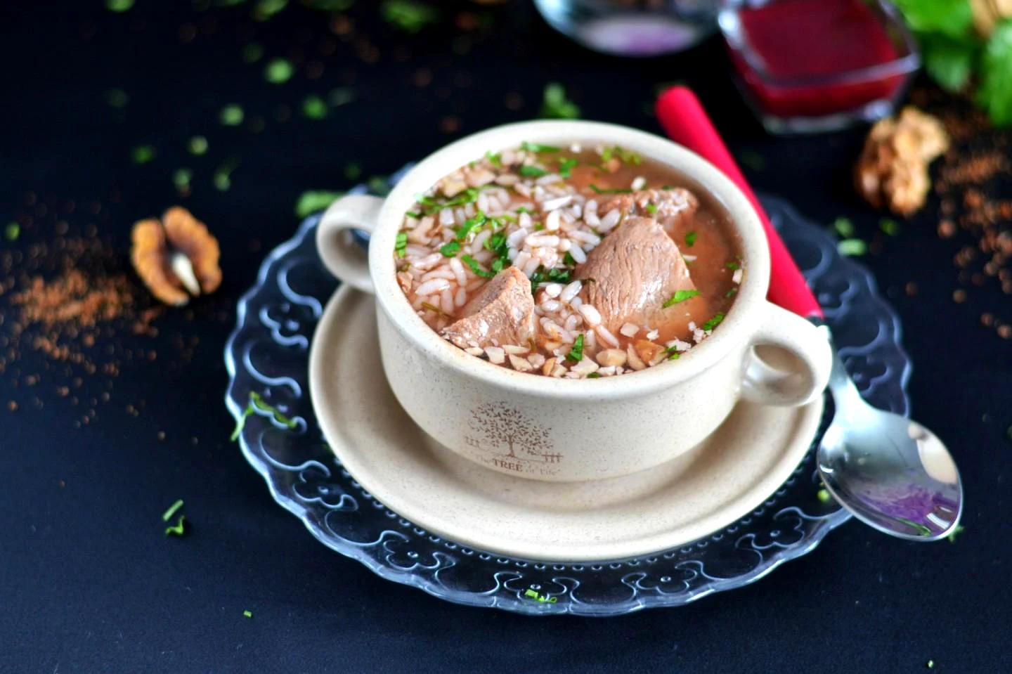 : Як зварити харчо з телятини? Підготуйте інгредієнти. Рис краще взяти круглий - в супі він виглядає краще, не розварюється. Воду - бутильовану чи фільтровану. Телятину можна замінити на будь-яке інше м'ясо до смаку. Овочі та зелень вимийте та обсушіть паперовими серветками.