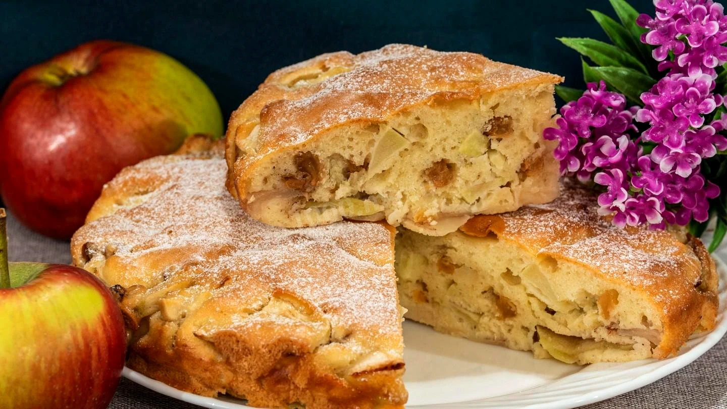 Классическая шарлотка с яблоками и изюмом
