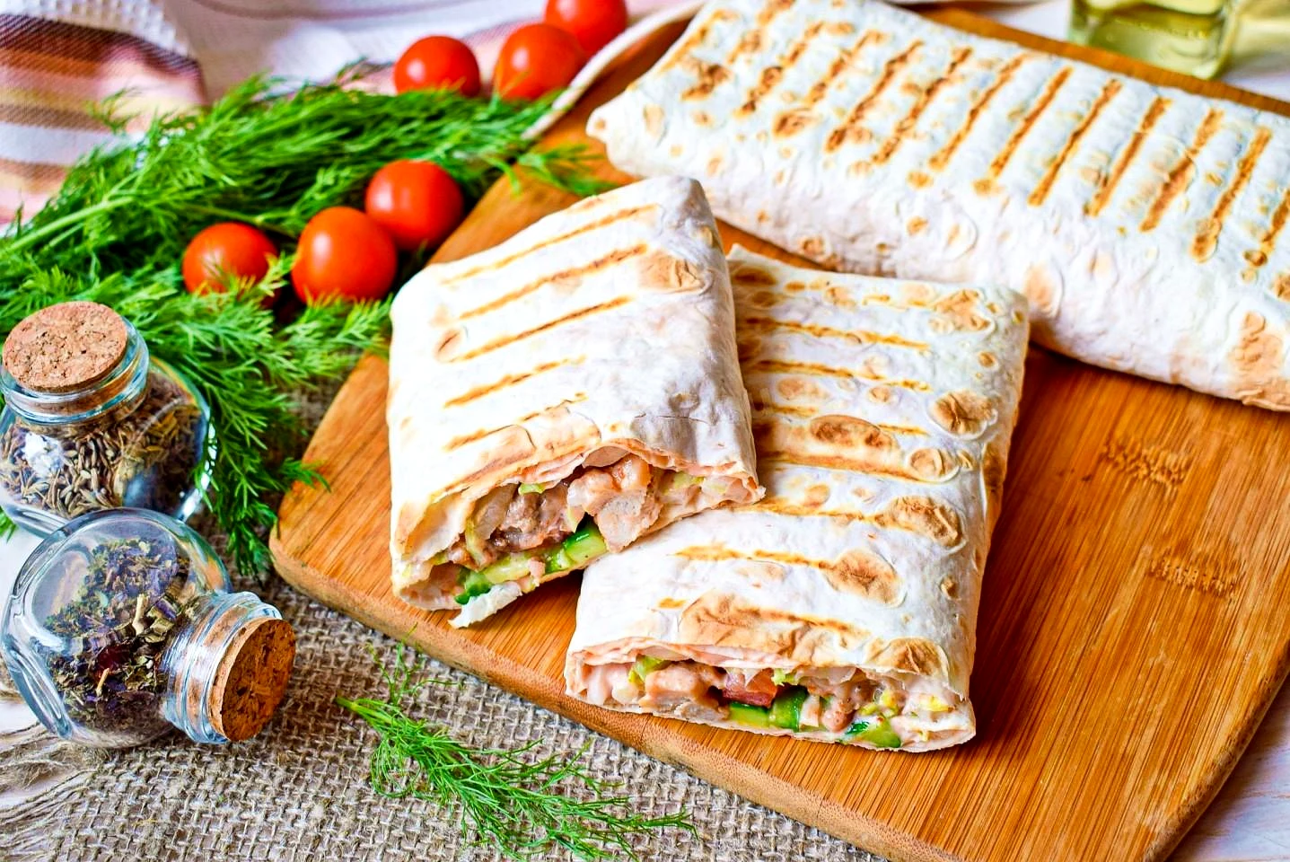 Классическая шаурма с курицей помидорами и капустой