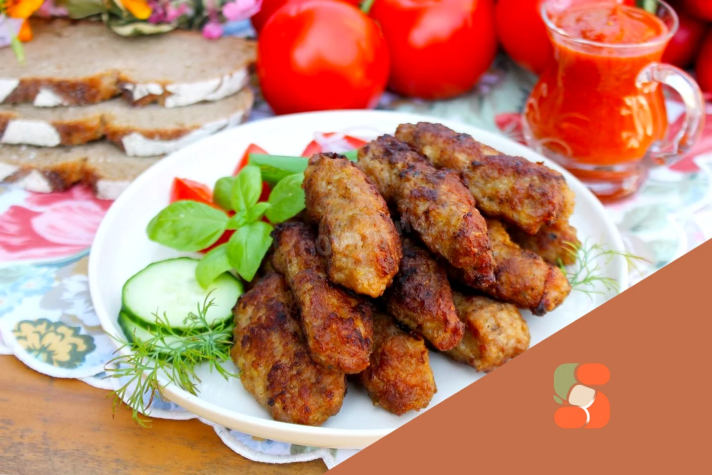 : Готовий фарш зачерпуйте столовою ложкою та змоченими руками формуйте тонкі ковбаски. Діаметр зробіть 1,5-2 см, а довжину близько 10 см.