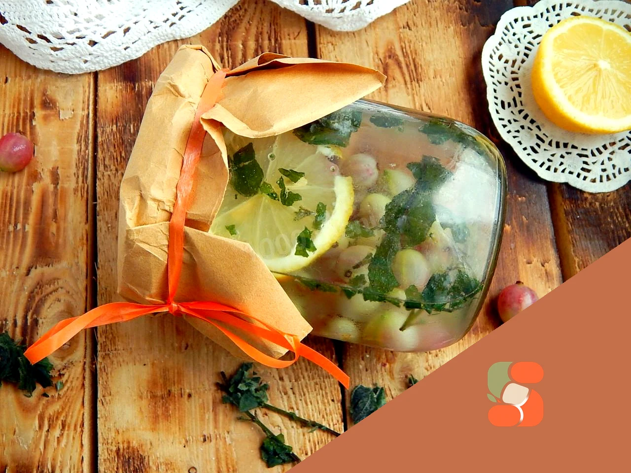 : У чисті (промиті з содою) і простерилізовані банки викладіть ягоди аґрусу, часточки лимона та промиту та просушену на паперовому рушнику зелень м'яти. Якщо ви не дуже любите такі пряні трави як м'ята, можете додати лише кілька листочків цієї трави.