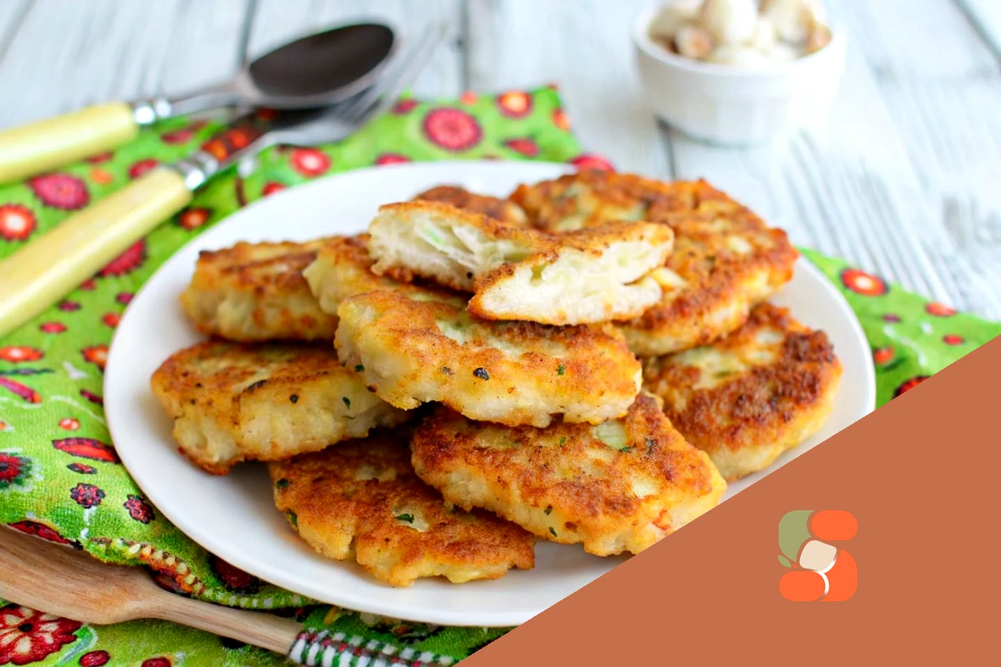 : До загальної маси додайте куряче м'ясо шматочками Все ретельно перемішайте та відрегулюйте густоту. Налийте на сковороду олію і прожарите її. Далі викладайте по столовій ложці фаршу та смажте котлети з одного боку 5 хвилин на помірному вогні. Переверніть їх, зменшіть вогонь, накрийте кришкою сковороду і смажте ще 5-7 хвилин.