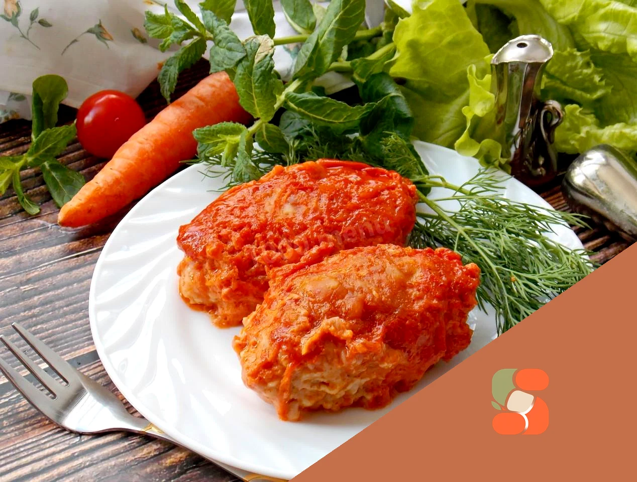: Вийміть котлети з духовки та одразу подавайте. До соковитих котлет у духовці з підливкою з томатного соусу підходить абсолютно будь-який гарнір, за рахунок того, що подаються вони з підливою.