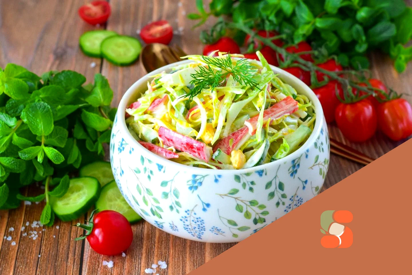 : Крабовий салат з капустою та огірками прикрасьте свіжою зеленню та подайте до столу. Приємного апетиту!