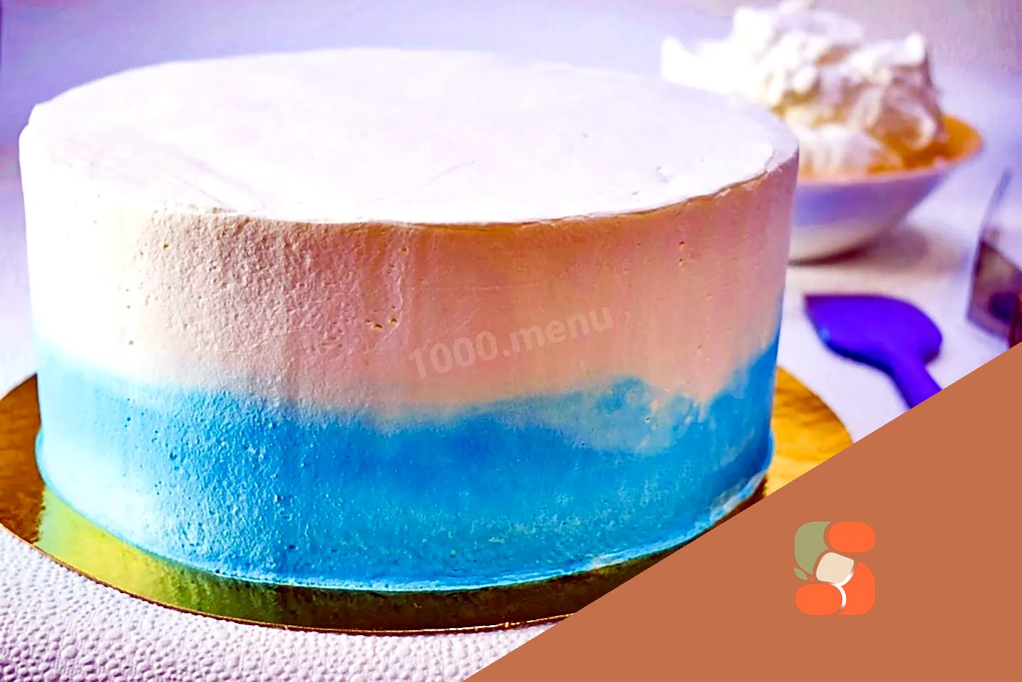 : Густий крем чиз можна пофарбувати будь-якими харчовими барвниками Для отримання білого кольору візьміть діоксид титану. А для отримання, наприклад, блакитного кольору підійде будь-який гелевий. Нанесіть крем по всій поверхні торта - з боків та зверху, за допомогою шпателя. Потім вирівняйте його скребком. Для цього поставте скребок під кутом 90 градусів до боку торта і повертайте торт. Готовий торт поставте в холодильник, щоб крем застиг.