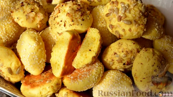 Печиво можна чимось присипати: маком, горіхами, кунжутом, насінням, цукром... чим вашій душі завгодно.