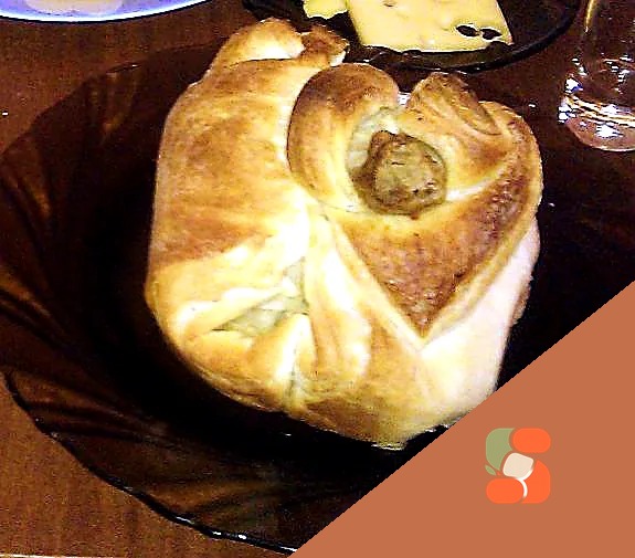 Розморозити заздалегідь листкове тісто. Злегка розкотити, розрізати квадратики розміром 15*15 див.