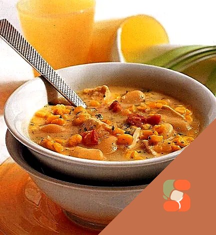 # Курячий суп з фасоллю, кукурудзою та беконом Це той самий душистий, наситний суп, що робить холодні дні теплішими і затишнішими! Золотистий бульйон з ніжною курятиною поєднується з м'якою фасоллю, …