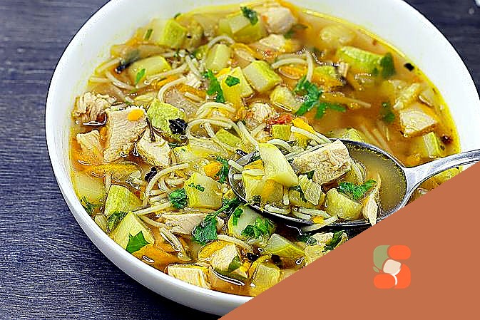 # Куриний суп з макаронами та кабачками Легкий та поживний суп, що тане на язику ніжною курячою м'ясом і м'якими шматочками кабачка. Золотистий бульйон з тонкою пастою створює ідеальну гармонію смакі…