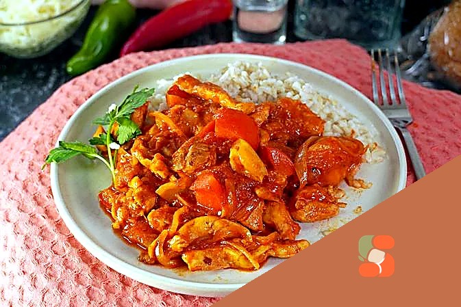 # Курица в цыганском соусе Розкішна м'ясна страва з аппетитною золотистою скоринкою та пікантним соусом, що поєднує гостроту, свіжість овочевих нот і глибину спецій. Цвітна гра від янтарного до багря…