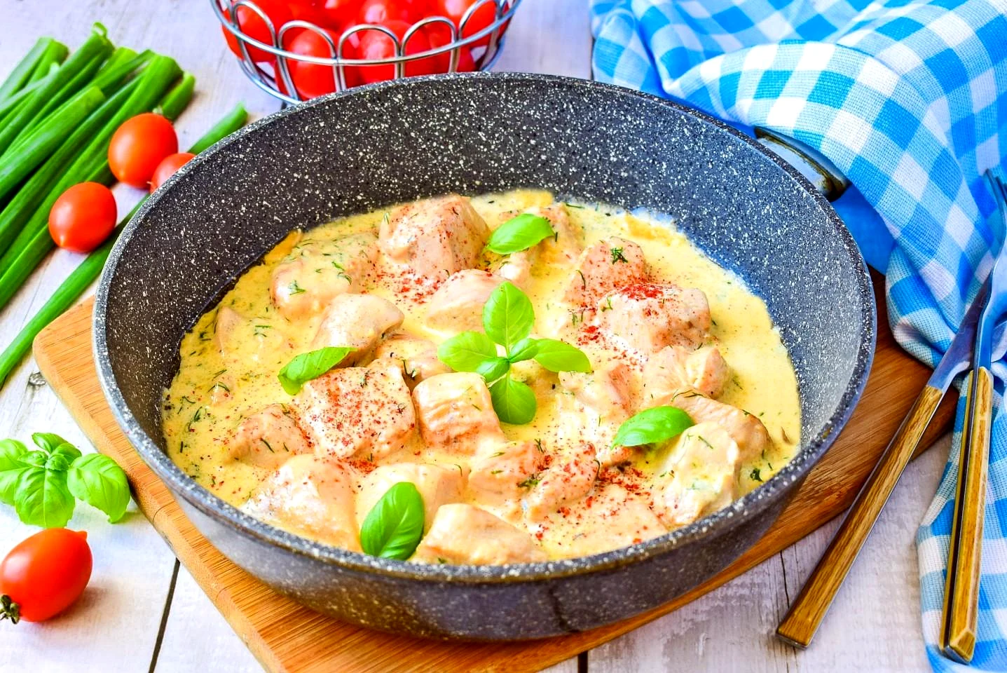 Куриные грудки в сливочном соусе на сковороде