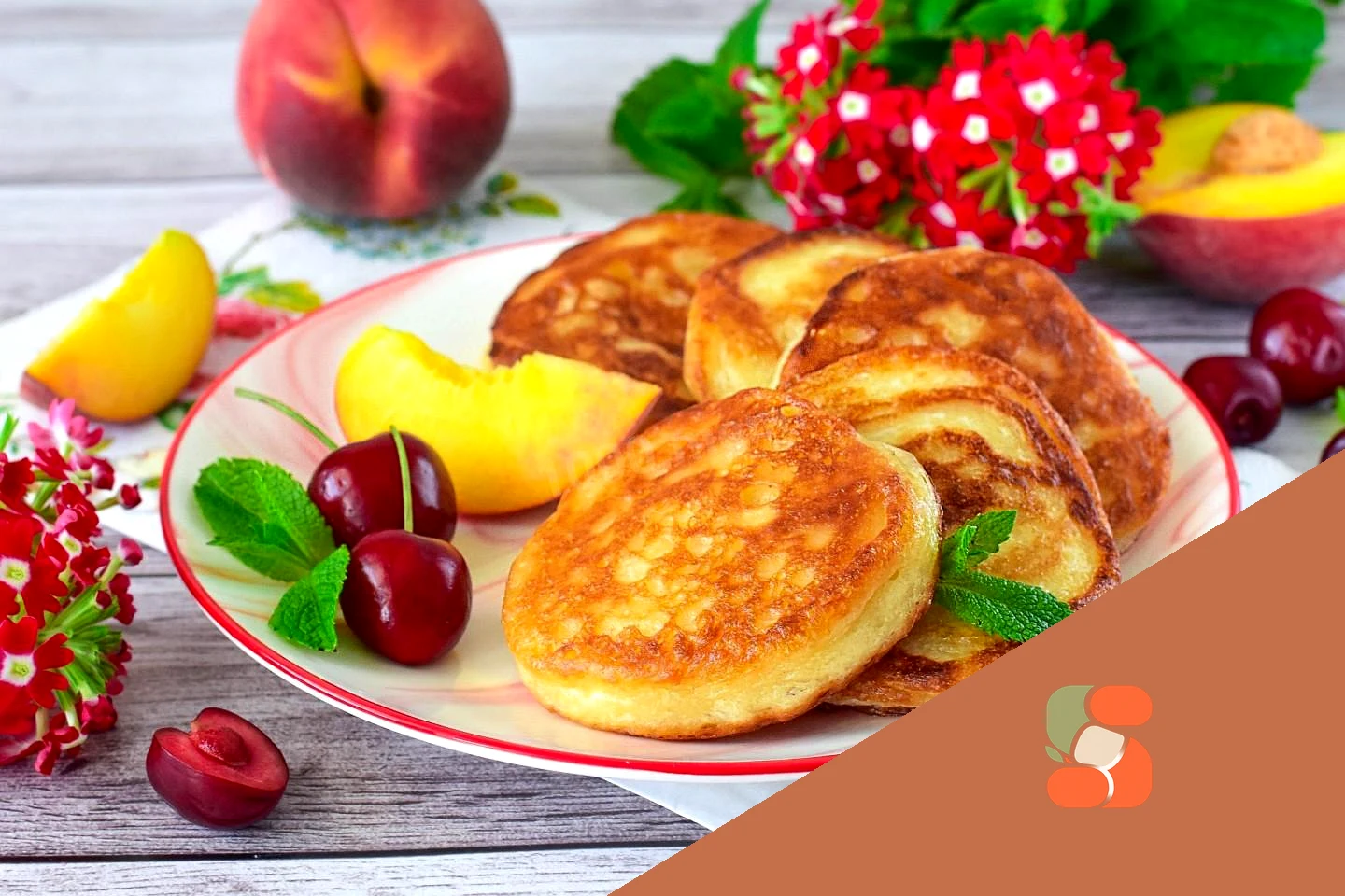 : Готові оладки перекладіть на тарілку і подайте до столу зі свіжими фруктами Приємного апетиту!