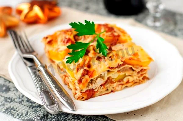 : Відправити лазанню в духовку, розігріту до 180 градусів, запікатися на 40 хвилин