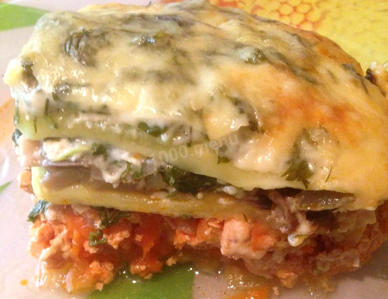 : викладаємо останній шар кабачком, поливаємо соусом, що залишився