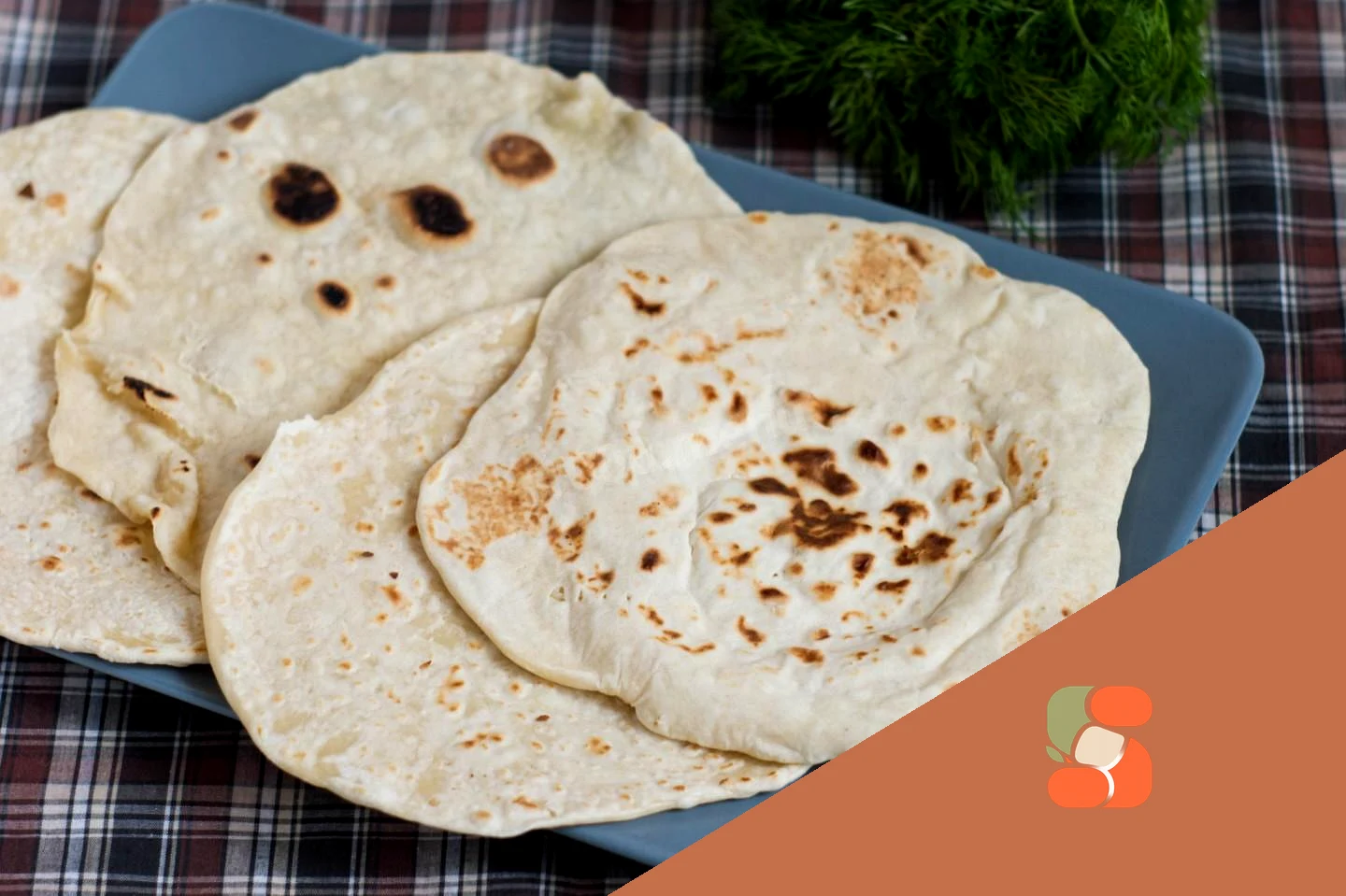 : Добре розігрійте суху сковорідку. Викладіть на сковороду тісто, що розкотило, і обсмажуйте 30-45 секунд на великому вогні до появи невеликих підпалин. Переверніть корж і обсмажуйте з іншого боку. Коржик може роздуватися зсередини. Обсмажуйте також до невеликих темних цяток і з іншого боку.