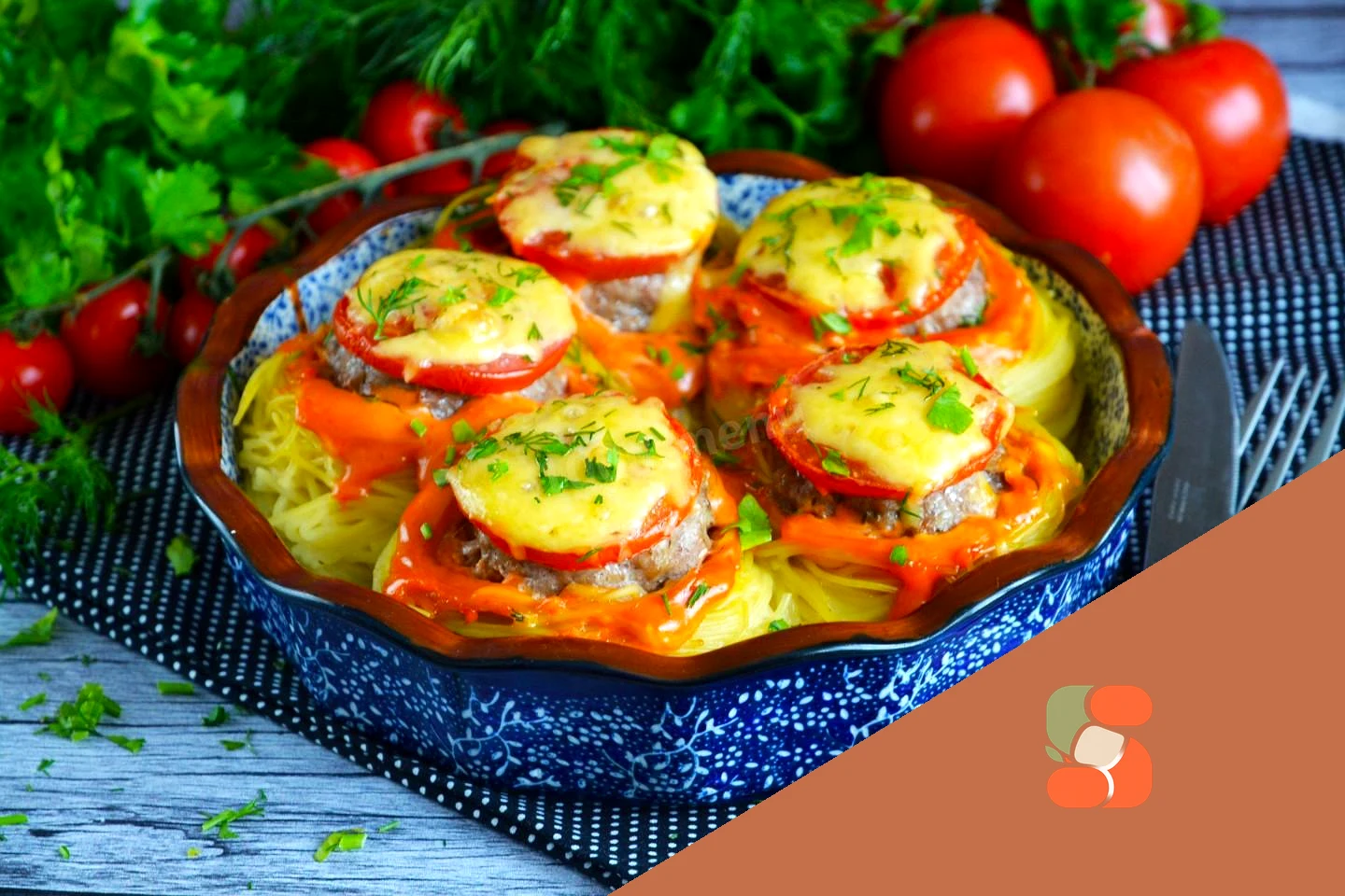 : Як запекти макарони гнізда з фаршем у духовці? Спочатку підготуйте необхідні інгредієнти за списком. Для початку приготуйте начинку. Фарш можете використовувати будь-який – свинячий, яловичий чи змішаний, як у мене. Тільки бажано, щоб фарш був не дуже жирний категорії, А чи Б.