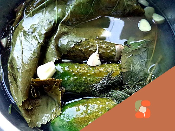Огірочки залити розсолом. Прикрити листям хрону.