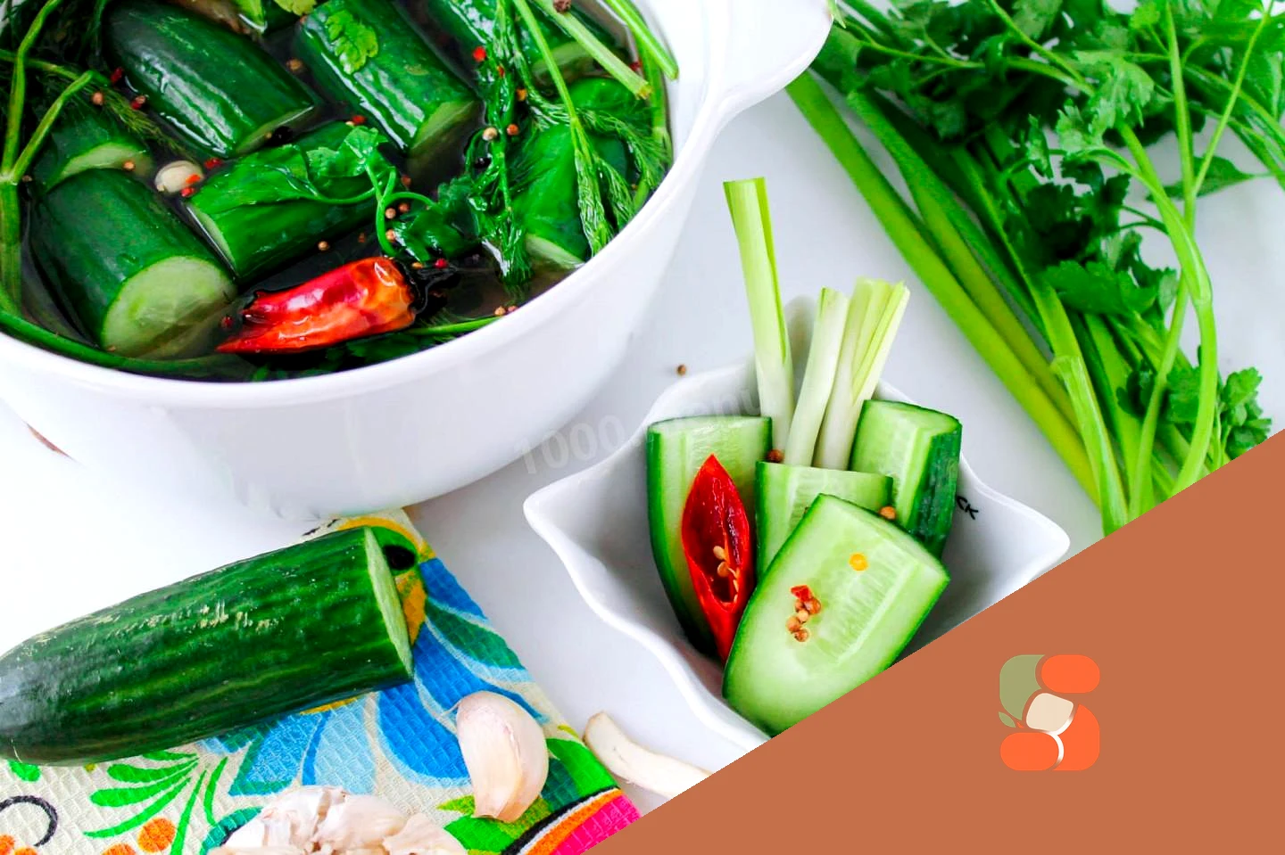 Як укласти прянощі в каструлю для засолювання огірків швидким способом? Візьміть посуд, в якому солитиме огірки. У мене це каструля. На дно цього посуду покладіть шар кропу та петрушки, розрізані навпіл зубчики часнику, нарізаний пластинками або колечками корінець хрону, покладіть гострий перчик. Що додати, щоб огірки були хрусткими? Я додала для цього корінь хрону, можна ще покласти лист хрону, вишні, дуба чи смородини за вашим бажанням та смаком.