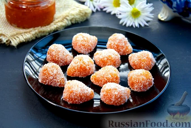 Застиглий мармелад можна обваляти в цукрі, але робити це потрібно перед подачею, тому що цукор на домашньому мармеладі досить швидко тане.