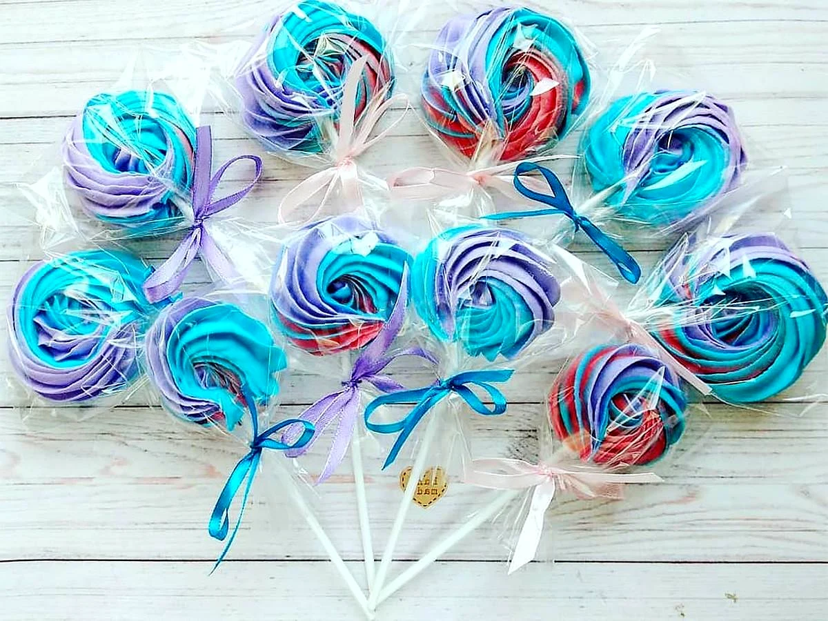 Інгредієнти−8 порцій+Продукти (8 порцій)Цукрова пудра175 грЯєчні білки3 шт.Лимонна кислота1 грХарчовий фарбник1 гр