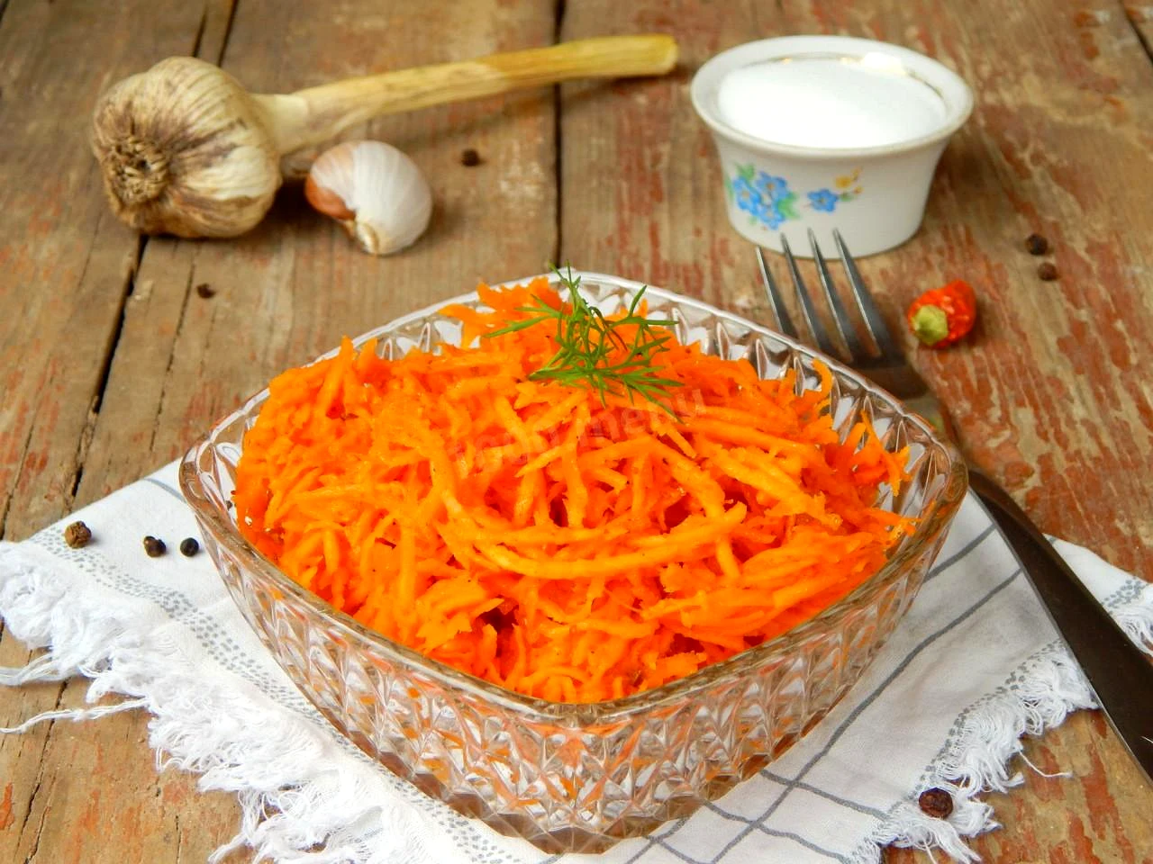 : За это время в миске с морковью появится выделившийся сок, слейте его, чтобы он не разбавил вкус специй и салат не стал водянистым. Залейте тертую морковь заправкой. Хорошо перемешайте салат и уберите в холодильник на пару часов. Салат можно подать к столу. Однако чем дольше салат морковча будет стоять в холодильнике, тем ее вкус будет насыщеннее и ярче, поэтому в идеале эту закуску лучше оставлять пропитаться в холодильнике на ночь.