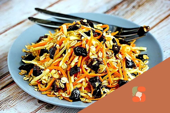 Морквяно-яблучний салат з вівсяними пластівцями та чорносливом