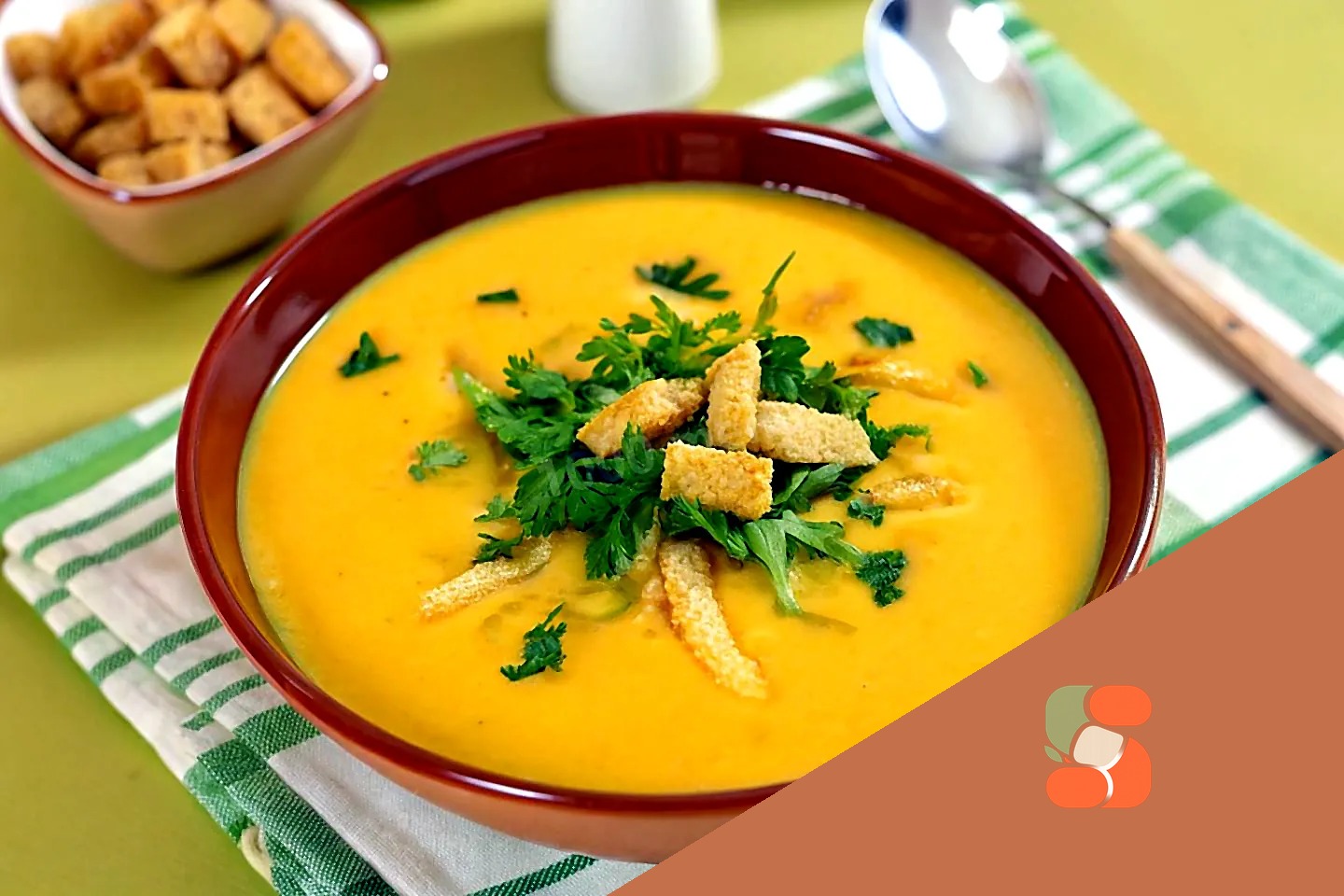 : Готовий суп розливаємо по тарілках і за бажанням додаємо сухарики та прикрашаємо зеленню. Детальний опис дивіться у відеорецепті. Бажаю всім приємного апетиту.