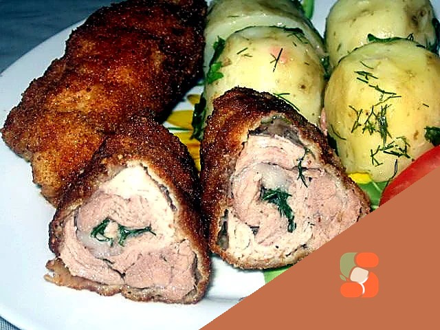 До м'ясних рулетиків з начинкою підійдемо будь-який гарнір та свіжі овочі. Смачного!