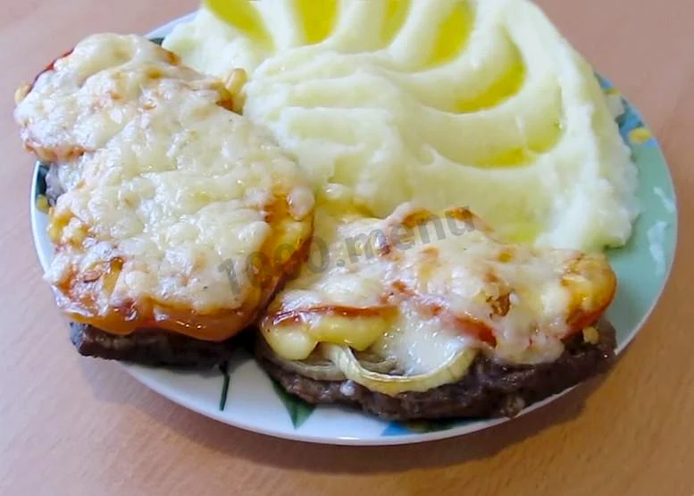 Інгредієнти−8 порцій+Продукти (8 порцій)Яловичина500 грПечериці200 грПомідори3 шт.Цибуля ріпчаста1 шт.Твердий сир150 грМайонез160 грОливкова олія1.5 стол.л.Лимонний сік2 стол.л.Вода0.5 л