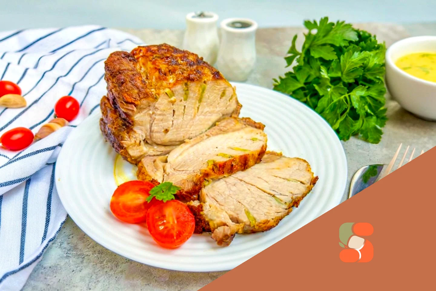 : Дістаньте готове м'ясо з духовки і залиште його остигати прямо у формі. Потім перекладіть на блюдо. Якщо бажаєте, щоб при нарізці вийшли акуратні скибочки, дайте м'ясу повністю охолонути в холодильнику перед нарізкою. Приємного апетиту!