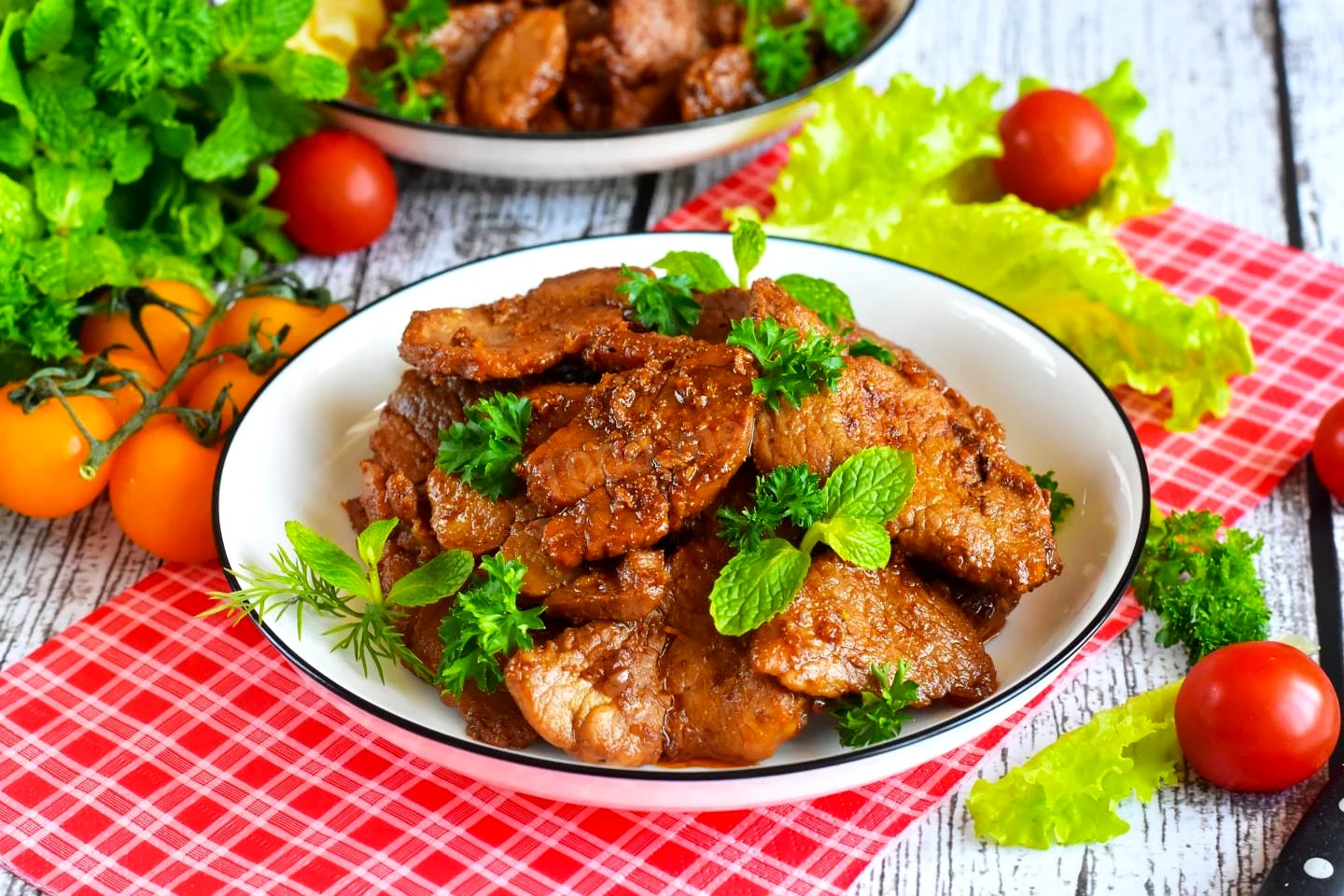 Мясо свинина в соевом соусе на сковороде