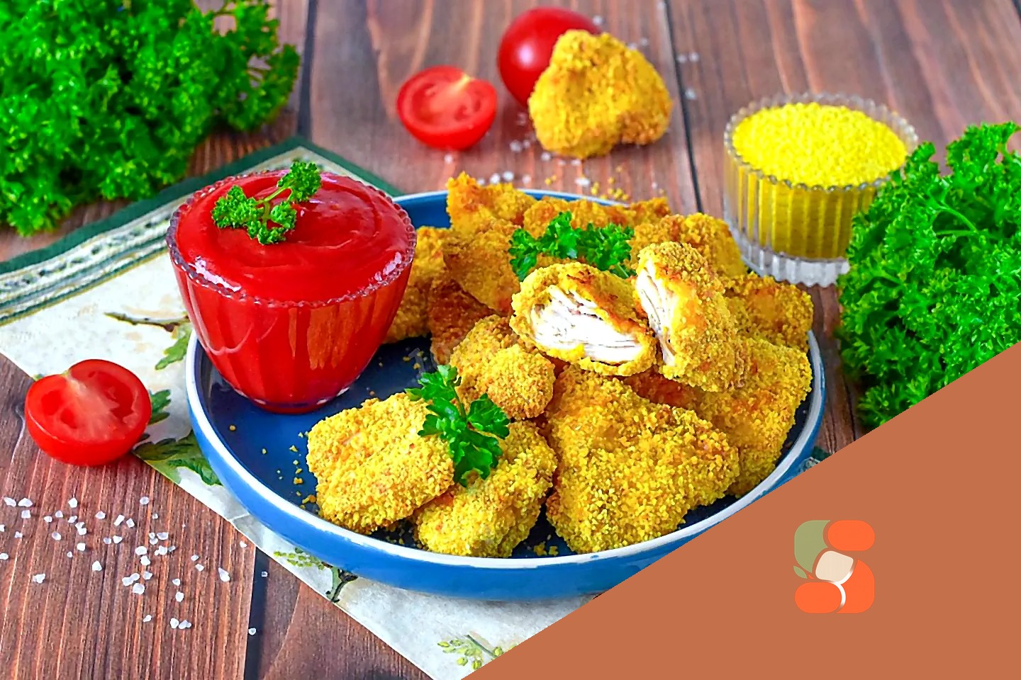 Як подати та зберігати домашні нагетси з курки, запечені в аерогрилі? Курячі нагетси, запечені в аерогрилі, перекладіть на тарілку і відразу подайте до столу з кетчупом або іншим соусом. Готові нагетси, що остигли, зберігайте в герметичній сухій тарі в холодильнику до 3 днів. Приємного апетиту!