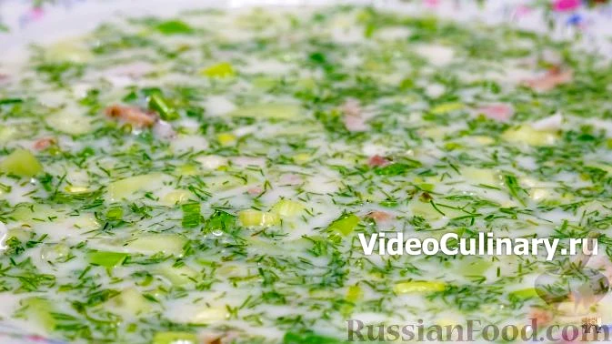 # Окрошка м'ясна сборна (на сироватці) Освіжаючий холодний суп з ніжною м'ясною нарізкою, що плаває в молочно-білій сироватці з легким кисломолочним смаком. Яскрава палітра овочів та зелені робить ст…
