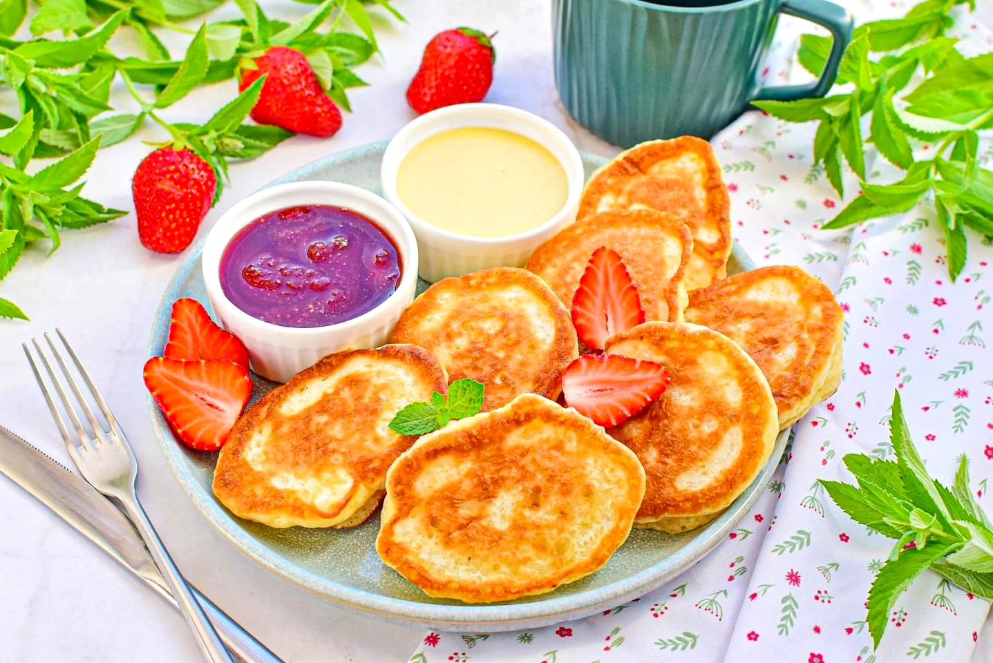 : Готовые оладьи снимайте со сковороды и выкладывайте на бумажное полотенце. Это необходимо для того, чтобы пропитать с них лишнее масло. Готовые оладьи подавайте с джемом, сгущенкой или со сметаной. Приятного аппетита!