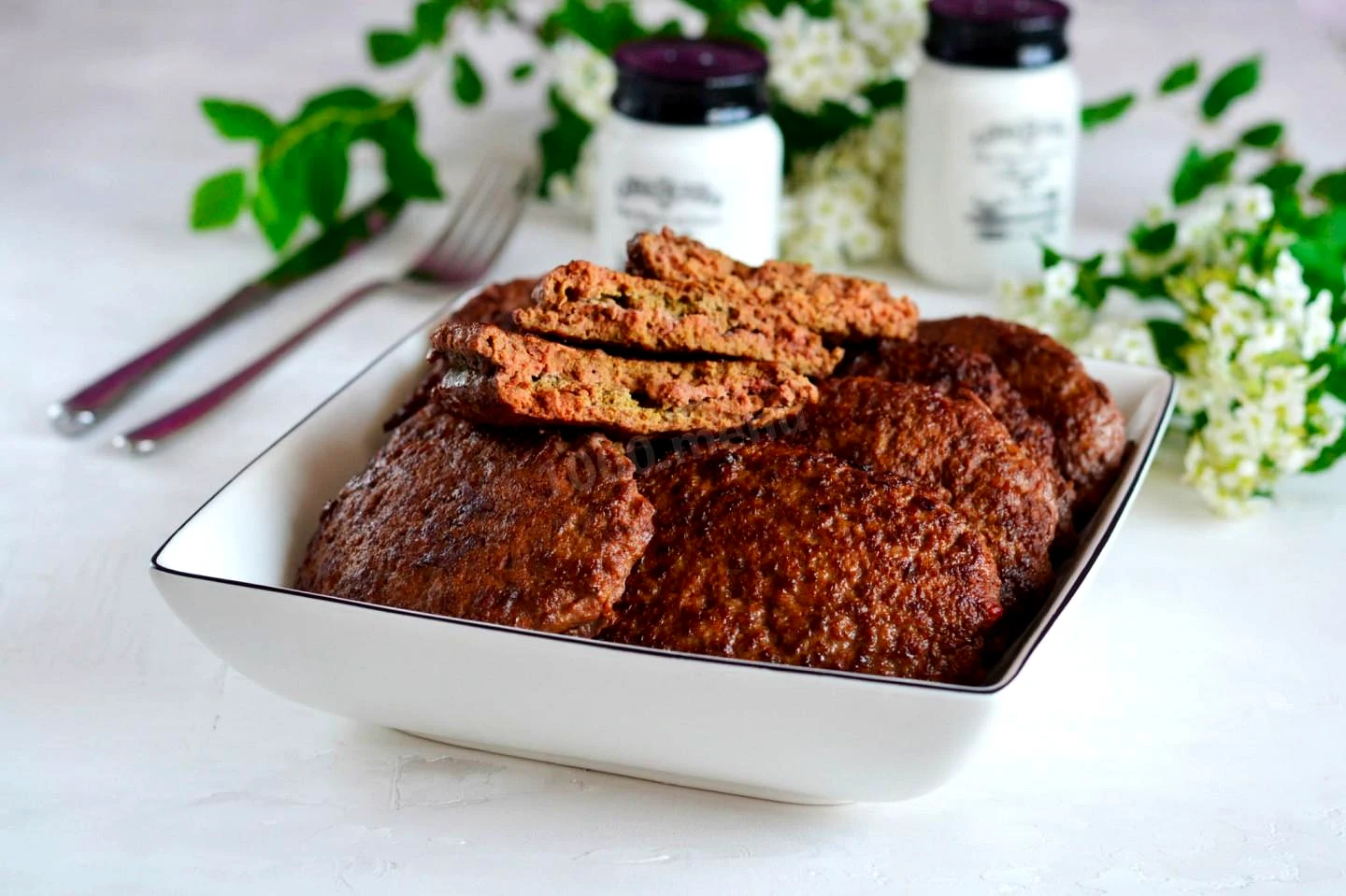 : Внутри оладьи должны быть коричневатого цвета. В первые минуты обжарки может выделяться кровь. В хорошо прожаренных оладьях крови быть не должно ни внутри, ни снаружи (если только вы не предпочитаете именно такую степень прожарки). Готовые оладьи переложите на блюдо и подайте к столу. К ним подойдет абсолютно любой гарнир. Приятного аппетита!