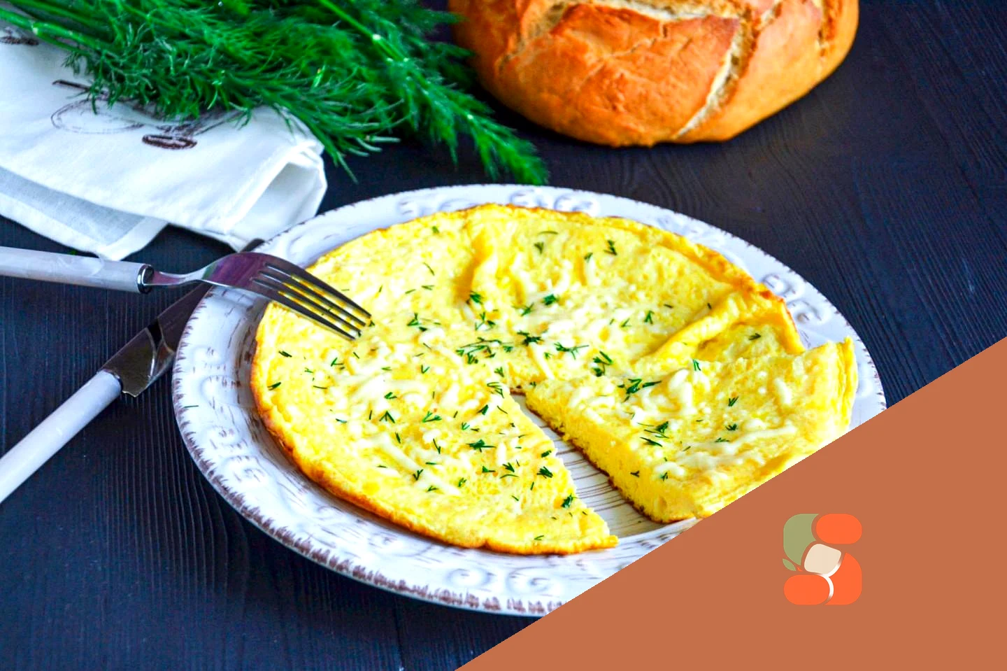 : Смажте омлет на невеликому вогні під кришкою близько 7 хвилин За цей час омлет добре збільшиться обсягом. На поверхні не повинно залишитися вологих ділянок, що не схопилися.