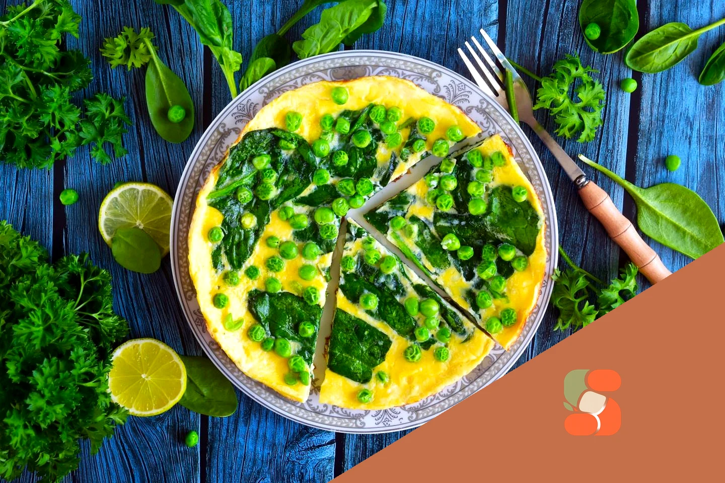 : Зверху посипте омлет зеленим горошком За бажанням можете додатково посипати тертим сиром омлет.