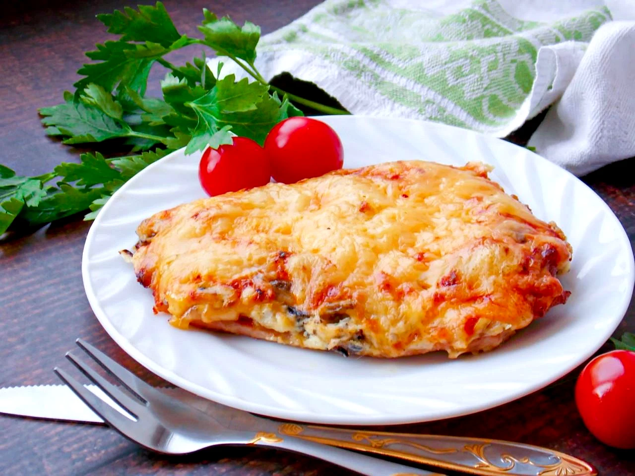 Отбивная с грибами и сыром из свинины в духовке