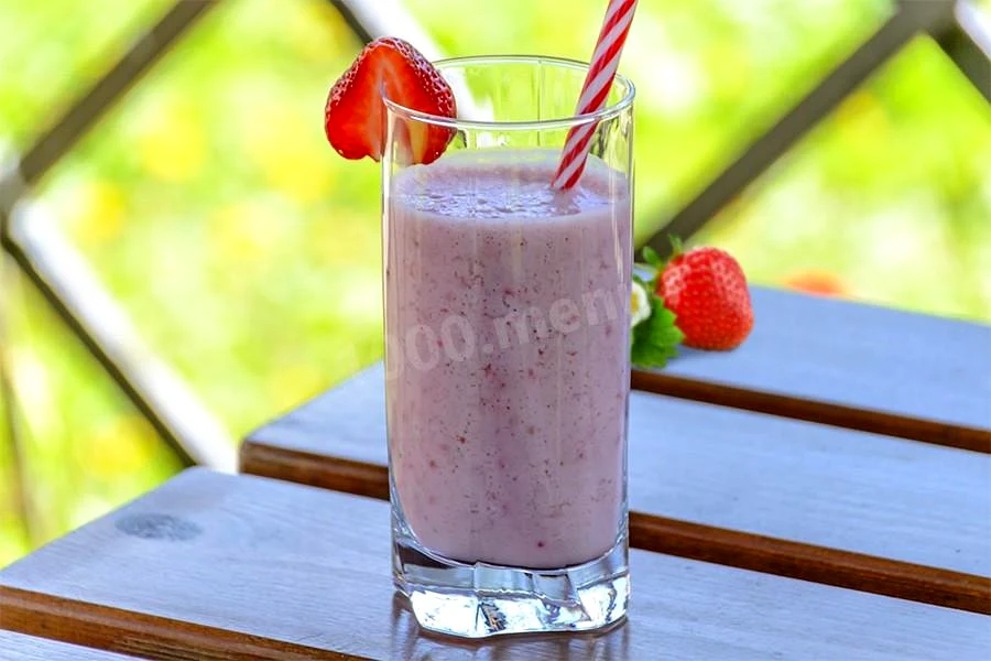 Інгредієнти−3 порції+Продукти (3 порції)Кефир400 млКлубника180 грОтруби ржаные20 грСахар20 грПорошок имбиря2.5 гр