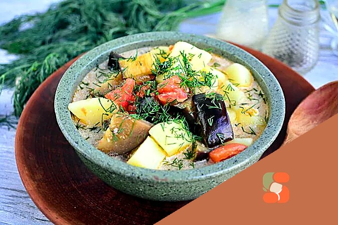 # Овочевий суп з баклажанами, помідорами та сметаною Ароматна овочева поема в глибокій миисці — м'яко-кремовий суп із нотками димленого баклажана та сонячної кислинки спілих помідорів. Кожна ложка ще…
