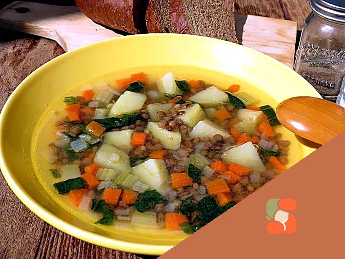 Овочевий суп із сочевицею, селера та шпинатом