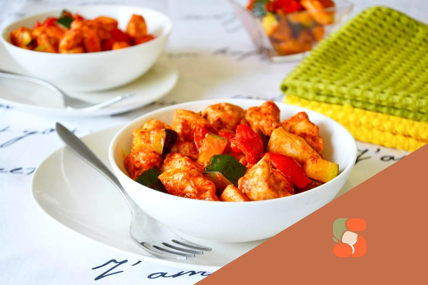 Як подавати овочеве рагу з куркою? Розкладіть курку з овочами по тарілках, прикрасьте свіжою зеленню (петрушкою, базиліком або кінзою) та подавайте гарячими. Приємного апетиту!
