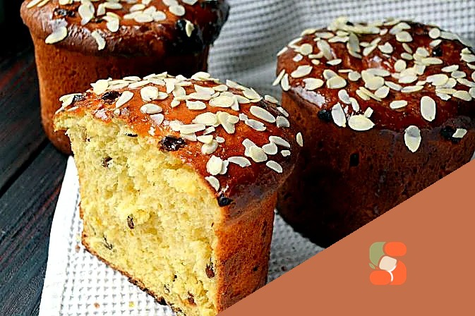 Після закінчення випічки дістаньте форми з духовки, дайте кексам трохи охолонути і витягніть панеттон з форм. Зверху змастіть медом і присипте мигдальними пластівцями.