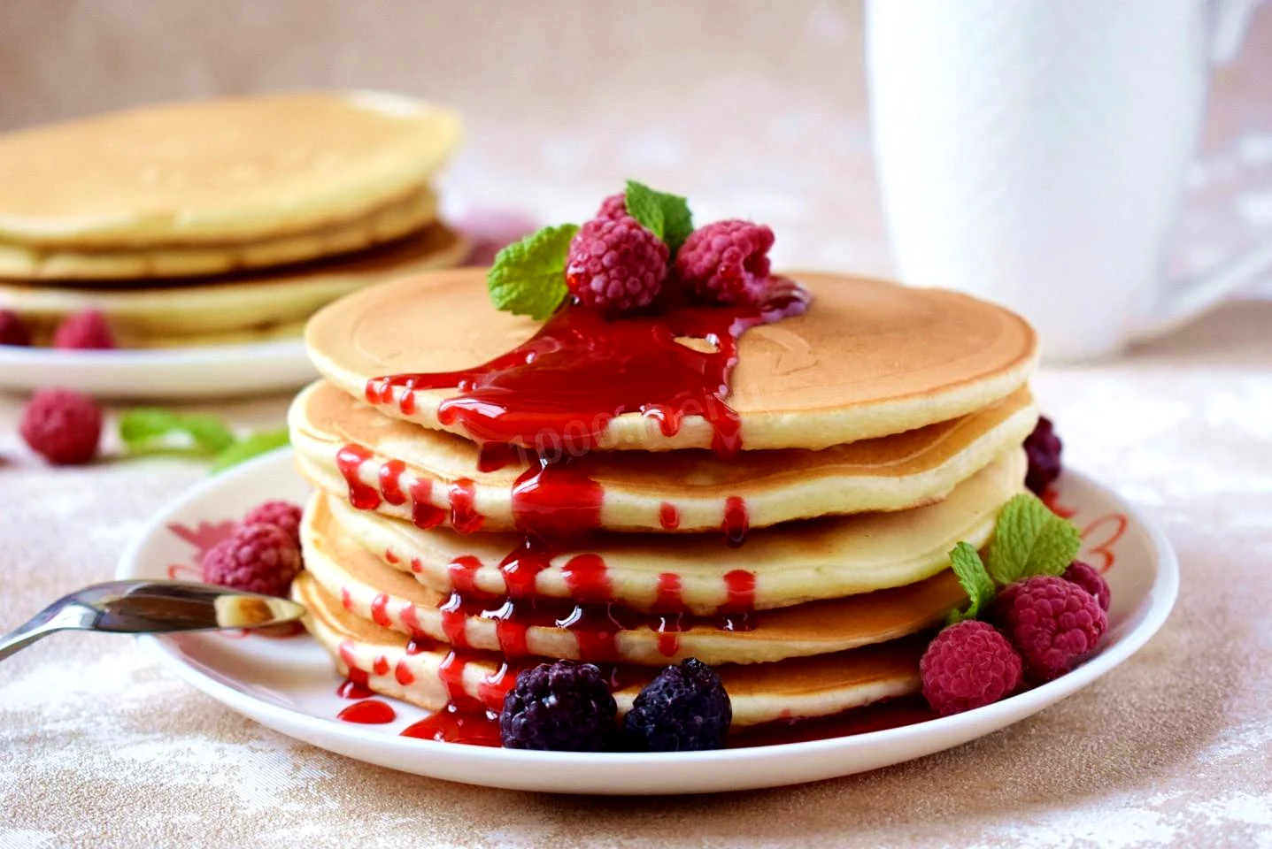 : Якщо використовуватимете велику сковороду, то рекомендую тісто зробити густішим, додавши ще приблизно 50-100 г борошна, інакше тісто розтікатиметься по поверхні і панкейки не вийдуть такими пишними. Готові панкейки дуже смачні у гарячому вигляді. Полийте їх будь-яким ягідним сиропом та подавайте до столу. Приємного частування!