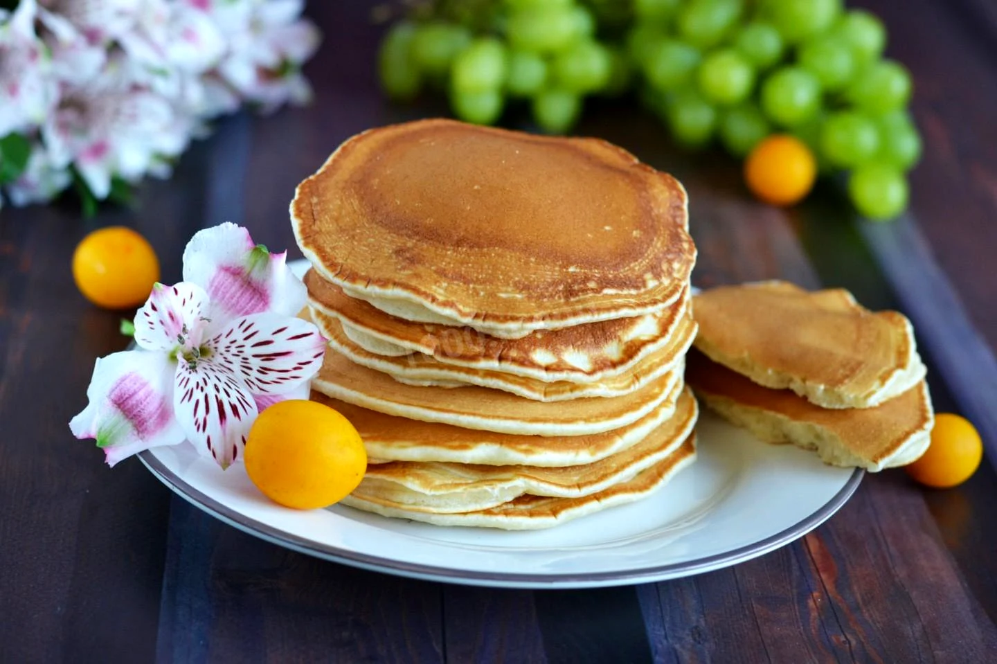 : Готові панкейки відразу подайте до столу гарячими Приємного апетиту!
