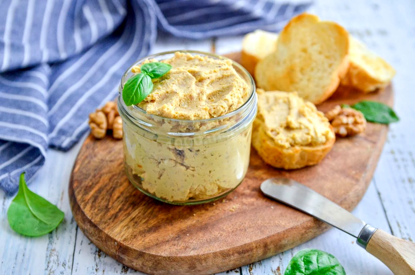 : Збийте всі інгредієнти до паштету. Якщо паштет вийшов сухуватий, то додайте ще трохи бульйону. Спробуйте його на сіль, за потреби додайте її. Перекладіть паштет у невеликі банки та заберіть на годину в холодильник.